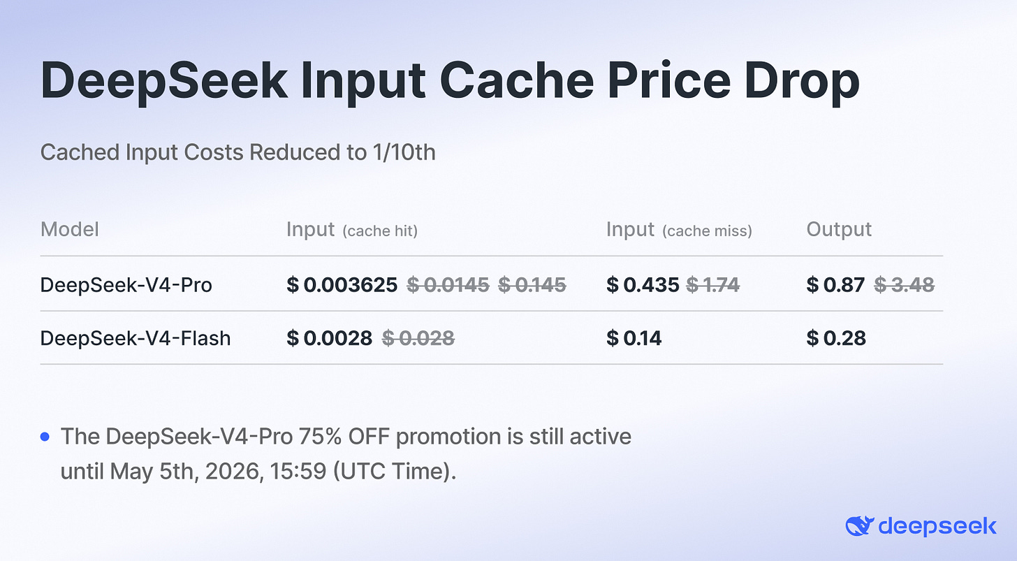 Then, on the second day, DeepSeek launched a 75% discount for V4-Pro API.